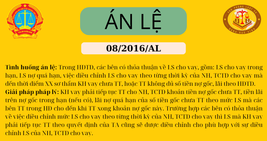 Ngoài ra, Tòa án cấp sơ thẩm và Tòa án cấp phúc thẩm quyết định: “Kể từ ngày bản án có hiệu lực pháp luật và người được thi hành án có đơn yêu cầu thi hành án, người phải thi hành án còn phải trả lãi đối với số tiền chậm thi hành án theo lãi suất cơ bản do Ngân hàng Nhà nước công bố tương ứng với thời gian chậm thi hành án” cũng là không đúng. Đối với các khoản tiền vay của tổ chức Ngân hàng, tín dụng, ngoài khoản tiền nợ gốc, lãi vay trong hạn, lãi vay quá hạn, phí mà khách hàng vay phải thanh toán cho bên cho vay theo hợp đồng tín dụng tính đến ngày xét xử sơ thẩm, thì kể từ ngày tiếp theo của ngày xét xử sơ thẩm khách hàng vay còn phải tiếp tục chịu khoản tiền lãi quá hạn của số tiền nợ gốc chưa thanh toán, theo mức lãi suất mà các bên thỏa thuận trong hợp đồng cho đến khi thanh toán xong khoản nợ gốc này. Trường hợp trong hợp đồng tín dụng, các bên có thỏa thuận về việc điều chỉnh lãi suất cho vay theo từng thời kỳ của Ngân hàng cho vay thì lãi suất mà khách hàng vay phải tiếp tục thanh toán cho Ngân hàng cho vay theo quyết định của Tòa án cũng sẽ được điều chỉnh cho phù hợp với sự điều chỉnh lãi suất của Ngân hàng cho vay.
