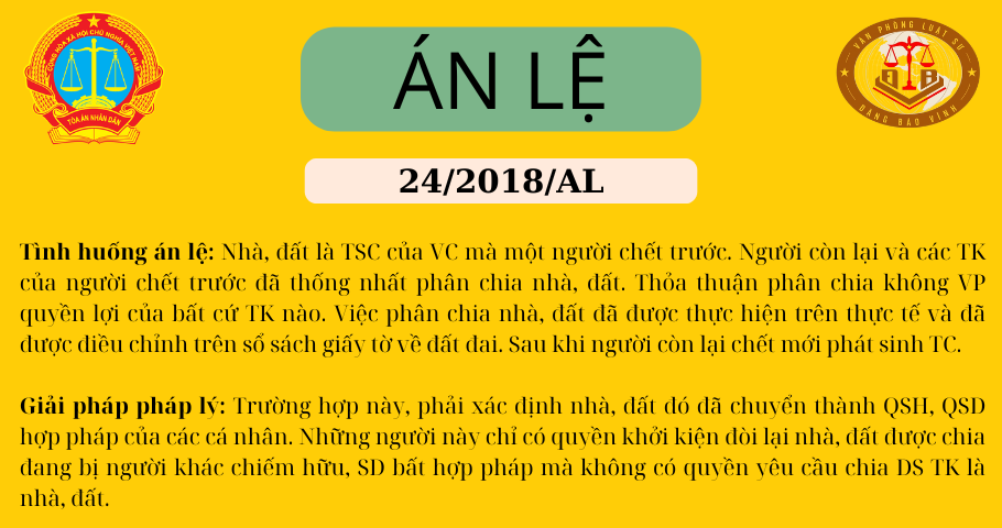 Trường hợp này, phải xác định nhà, đất đó đã chuyển thành quyền sở hữu, quyền sử dụng hợp pháp của các cá nhân. Những người này chỉ có quyền khởi kiện đòi lại nhà, đất được chia đang bị người khác chiếm hữu, sử dụng bất hợp pháp mà không có quyền yêu cầu chia di sản thừa kế là nhà, đất.