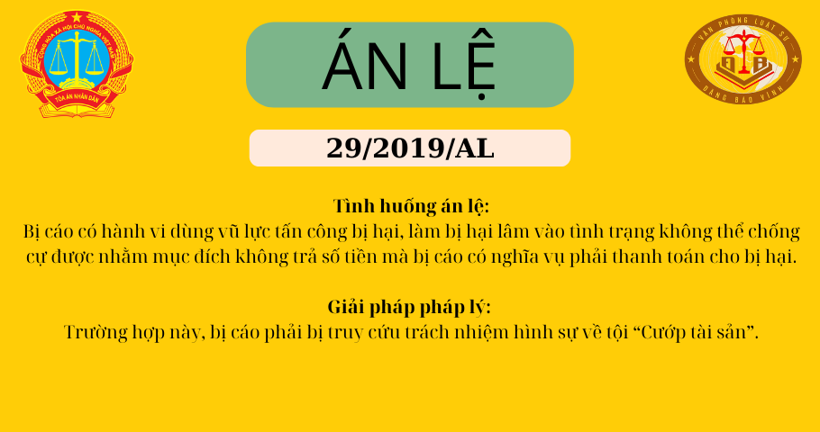Bị cáo có hành vi dùng vũ lực tấn công bị hại, làm bị hại lâm vào tình trạng không thể chống cự được nhằm mục đích không trả số tiền mà bị cáo có nghĩa vụ phải thanh toán cho bị hại.