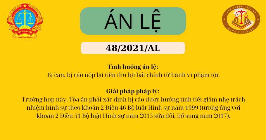 Trường hợp này, Tòa án phải xác định bị cáo được hưởng tình tiết giảm nhẹ trách nhiệm hình sự theo khoản 2 Điều 46 Bộ luật Hình sự năm 1999 (tương ứng với khoản 2 Điều 51 Bộ luật Hình sự năm 2015 sửa đổi, bổ sung năm 2017).