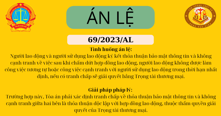 Trường hợp này, Tòa án phải xác định tranh chấp về thỏa thuận bảo mật thông tin và không cạnh tranh giữa hai bên là thỏa thuận độc lập với hợp đồng lao động, thuộc thẩm quyền giải quyết của Trọng tài thương mại.