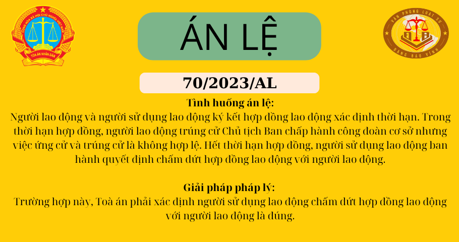 Người lao động và người sử dụng lao động ký kết hợp đồng lao động xác định thời hạn. Trong thời hạn hợp đồng, người lao động trúng cử Chủ tịch Ban chấp hành công đoàn cơ sở nhưng việc ứng cử và trúng cử là không hợp lệ. Hết thời hạn hợp đồng, người sử dụng lao động ban hành quyết định chấm dứt hợp đồng lao động với người lao động.